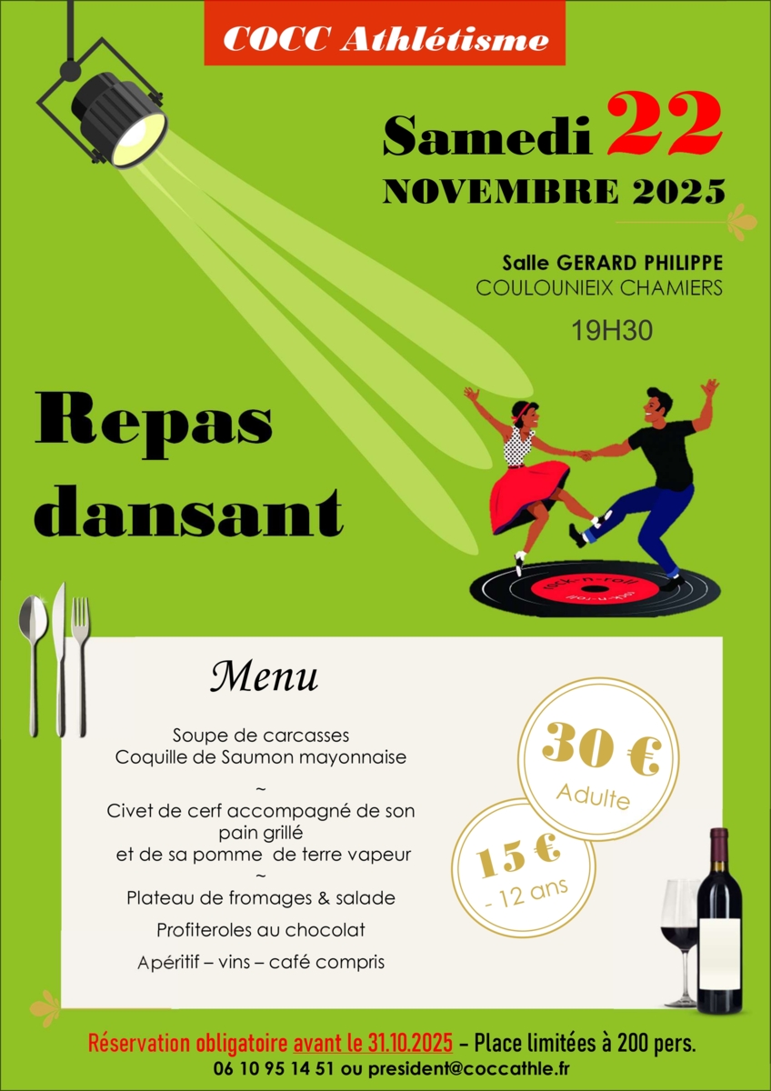 le COCC Athlétisme organise un repas dansant le