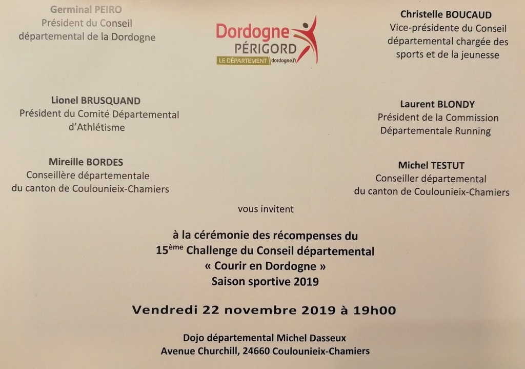 Cérémonie récompenses challenge "COURRIR EN DORDOGNE"